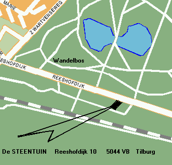 Als u van Waalwijk/Kaatsheuvel komt via de N261 moet u aan het einde van deze weg als u Tilburg binnen komt rechtdoor rijden. U gaat over een brug heen en bij de rontonde gaat u rechtdoor . na de rotonde bij de tweede stoplichten rechtsaf ( Moskee ) de Wandelboslaan op. Deze weg blijven volgen. U passeert enkele rotondes en stoplichten. U blijft rechtdoor rijden tot u op een soort T spiltsing komt . U rijdt dan tegen het wandelbos. Hier gaat u linksaf de taxandriëbaan op (100m) die dan vanzelf overgaat in het begin van de Reeshofdijk. De Steentuin ligt dan ongeveer 300 m aan de linkerkant.